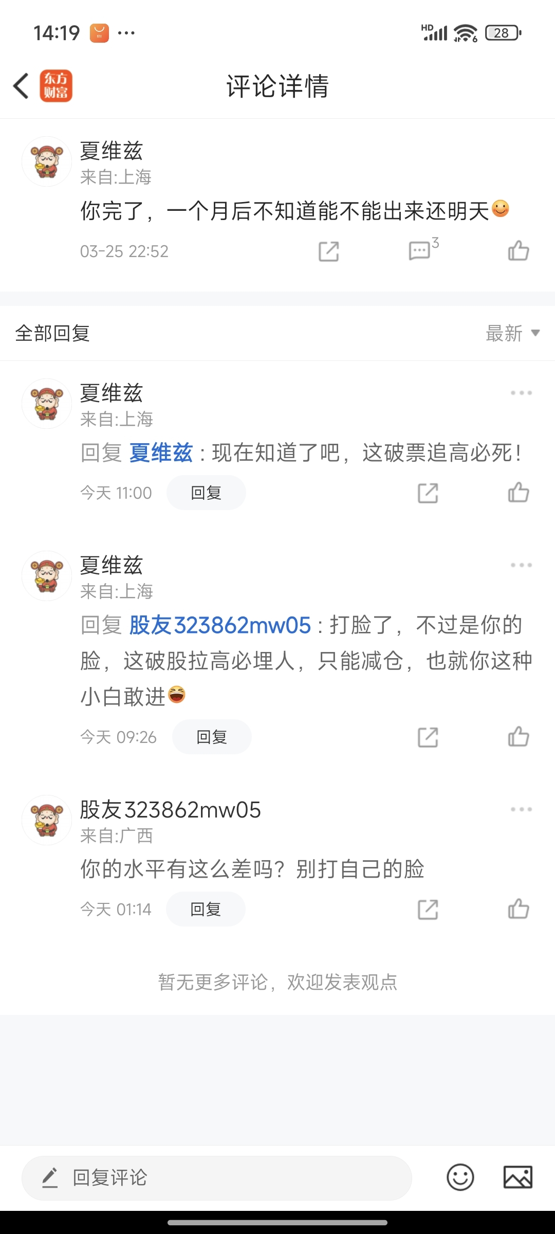 温馨提示: 1.根据《证券法》规定,禁止编造、传播虚假信息或者误导性信息,扰乱证券市场;2.用户在本社区发表的所有资料、言论等仅代表个人观点,与本网站立场无关,不对您构成任何投资建议。用户应基于自己的独立判断,自行决定证券投资并承担相应风险。《东方财富社区管理规定》