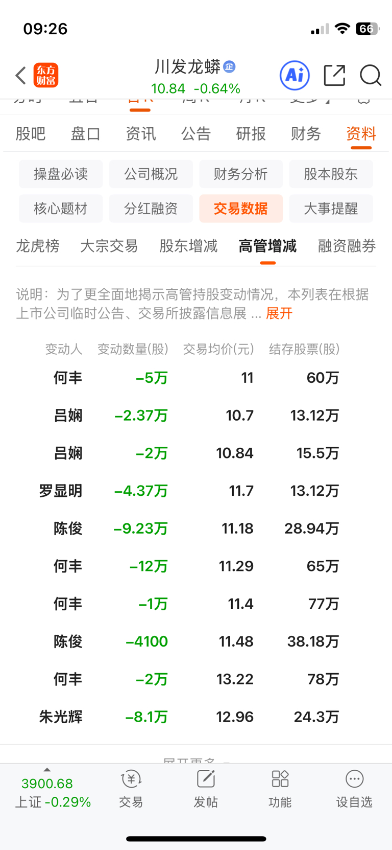 $川发龙蟒(SZ002312)$ 何丰高管还有60万股,再出个减持公告5万又能压3个月。