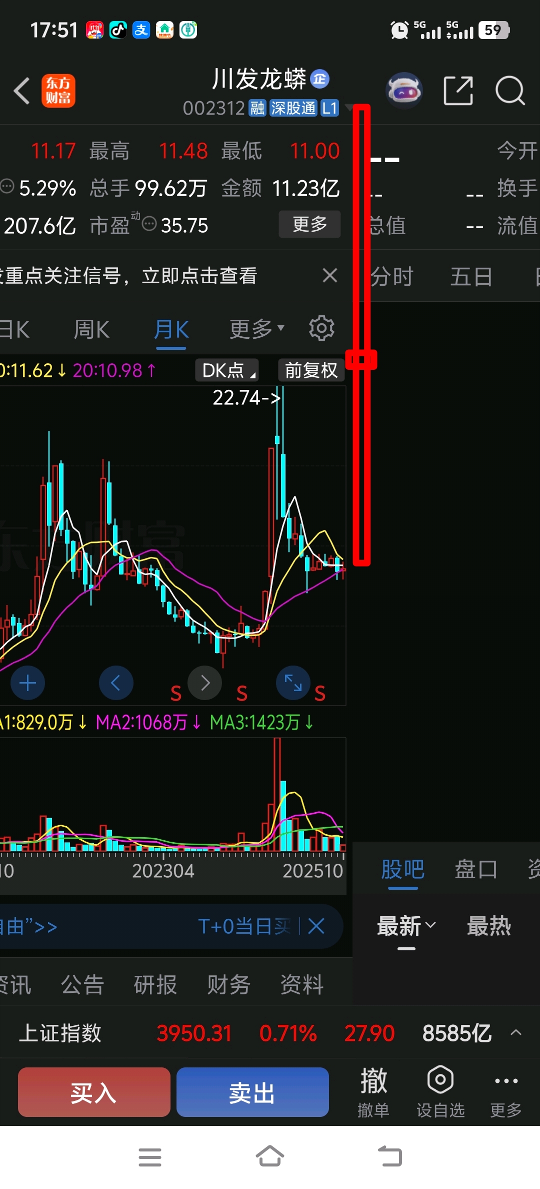 $川发龙蟒(SZ002312)$ 月线调整到位,家人们满意吗?