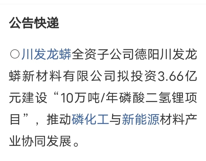铁矿石、锂矿、磷矿、(子公司扩建)磷酸二氢锂项目(磷化工与新能源材料)