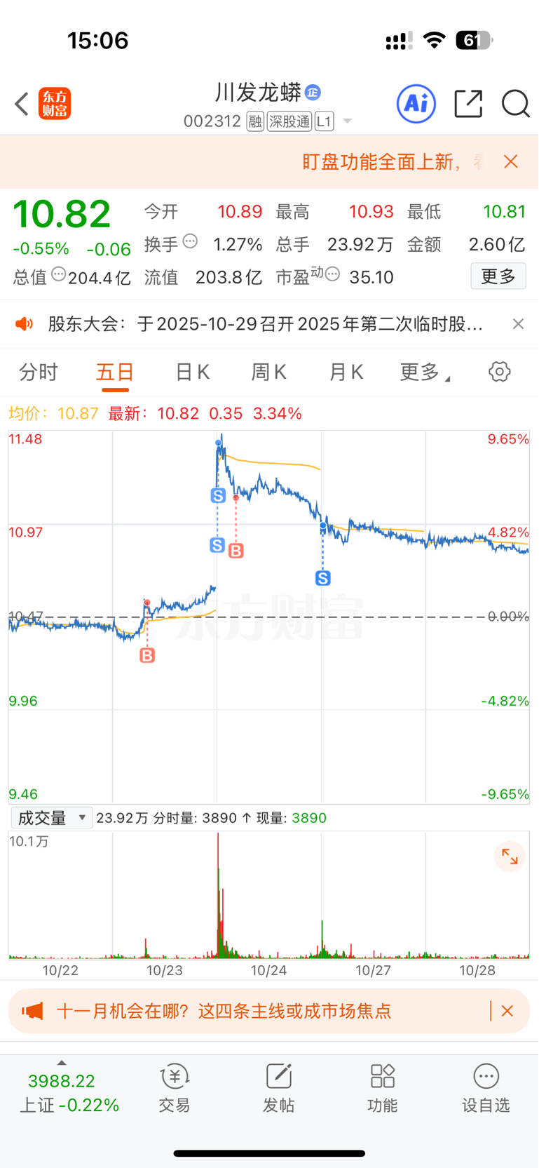 $川发龙蟒(SZ002312)$ 这个股票真是没救了,删自选了,再见