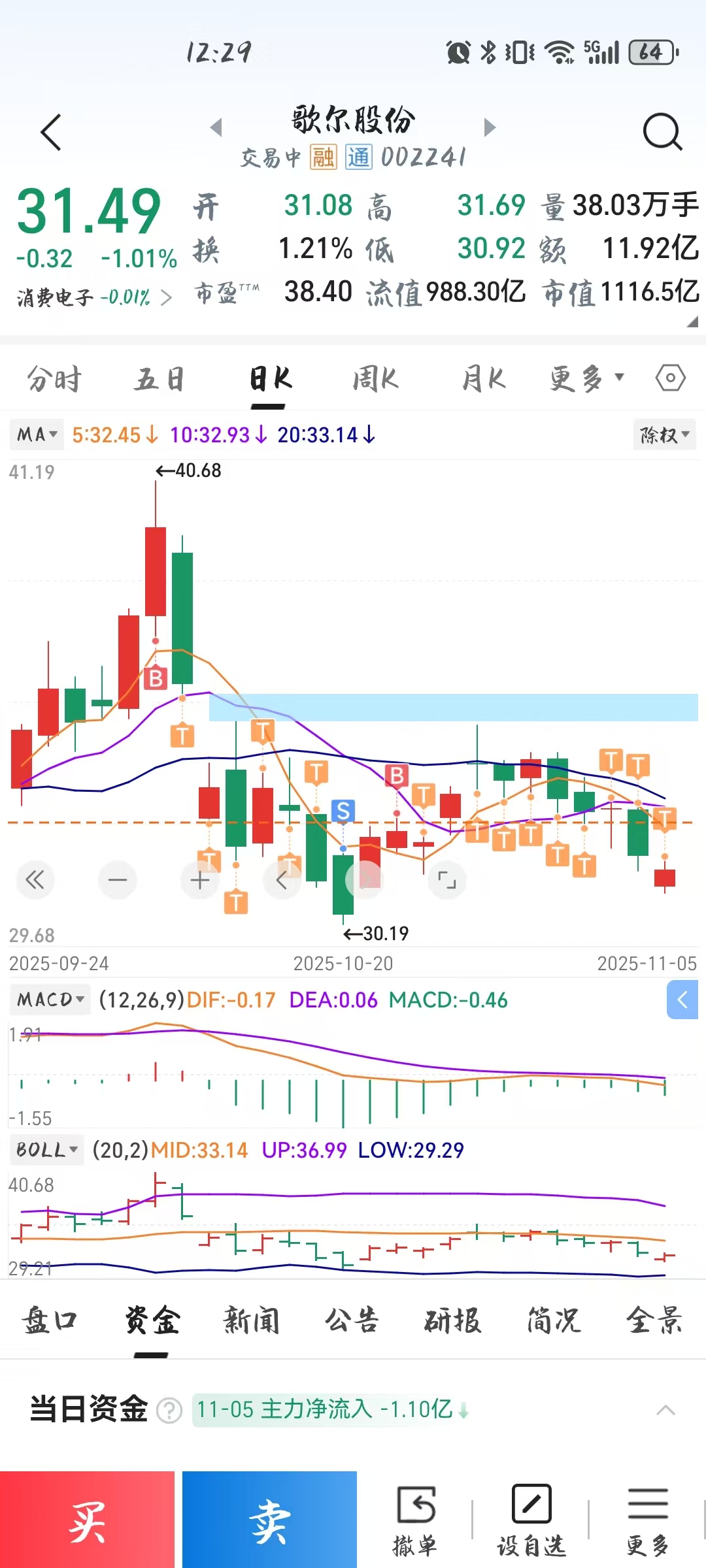 大a真是专治不服,继上次追歌尔三天亏6万后上周看走强二追歌尔又是5连跌,只能被迫