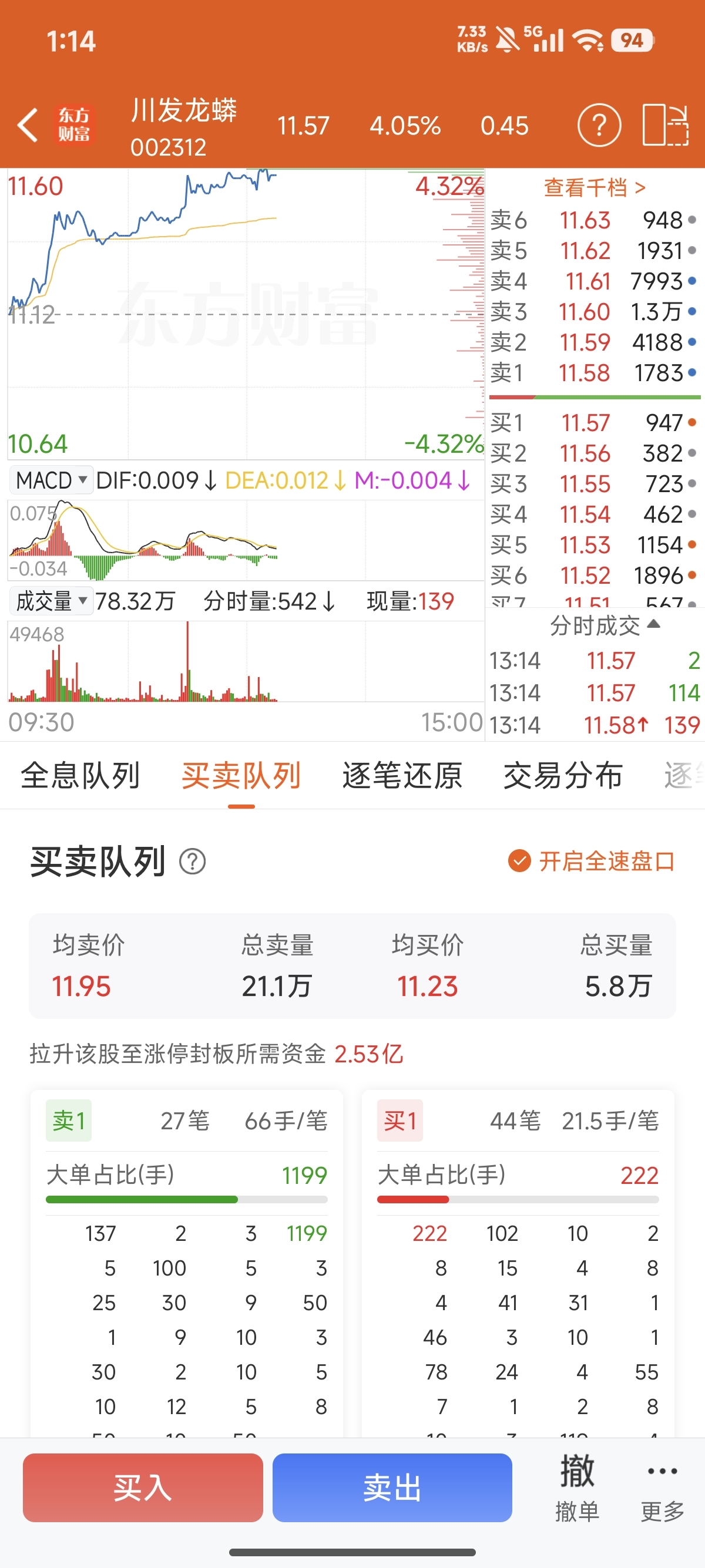 $川发龙蟒(SZ002312)$ 涨停最最最最最少要三个亿