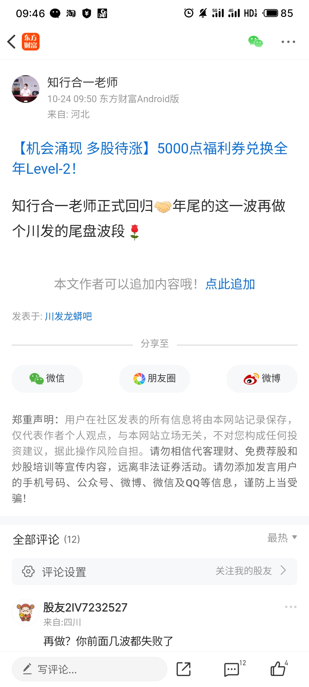温馨提示: 1.根据《证券法》规定,禁止编造、传播虚假信息或者误导性信息,扰乱证券市场;2.用户在本社区发表的所有资料、言论等仅代表个人观点,与本网站立场无关,不对您构成任何投资建议。用户应基于自己的独立判断,自行决定证券投资并承担相应风险。《东方财富社区管理规定》