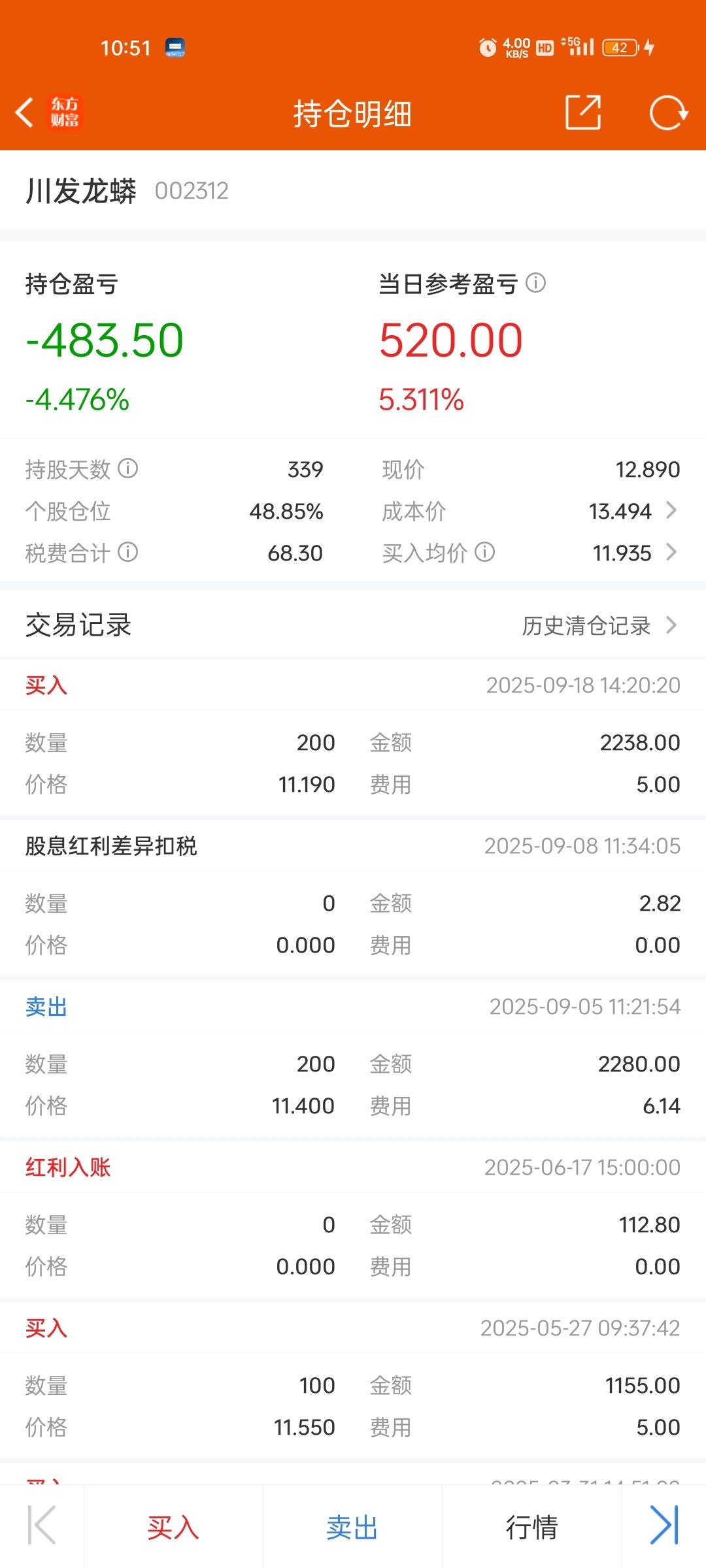 $川发龙蟒(SZ002312)$ 要不要跑路,亏几百块