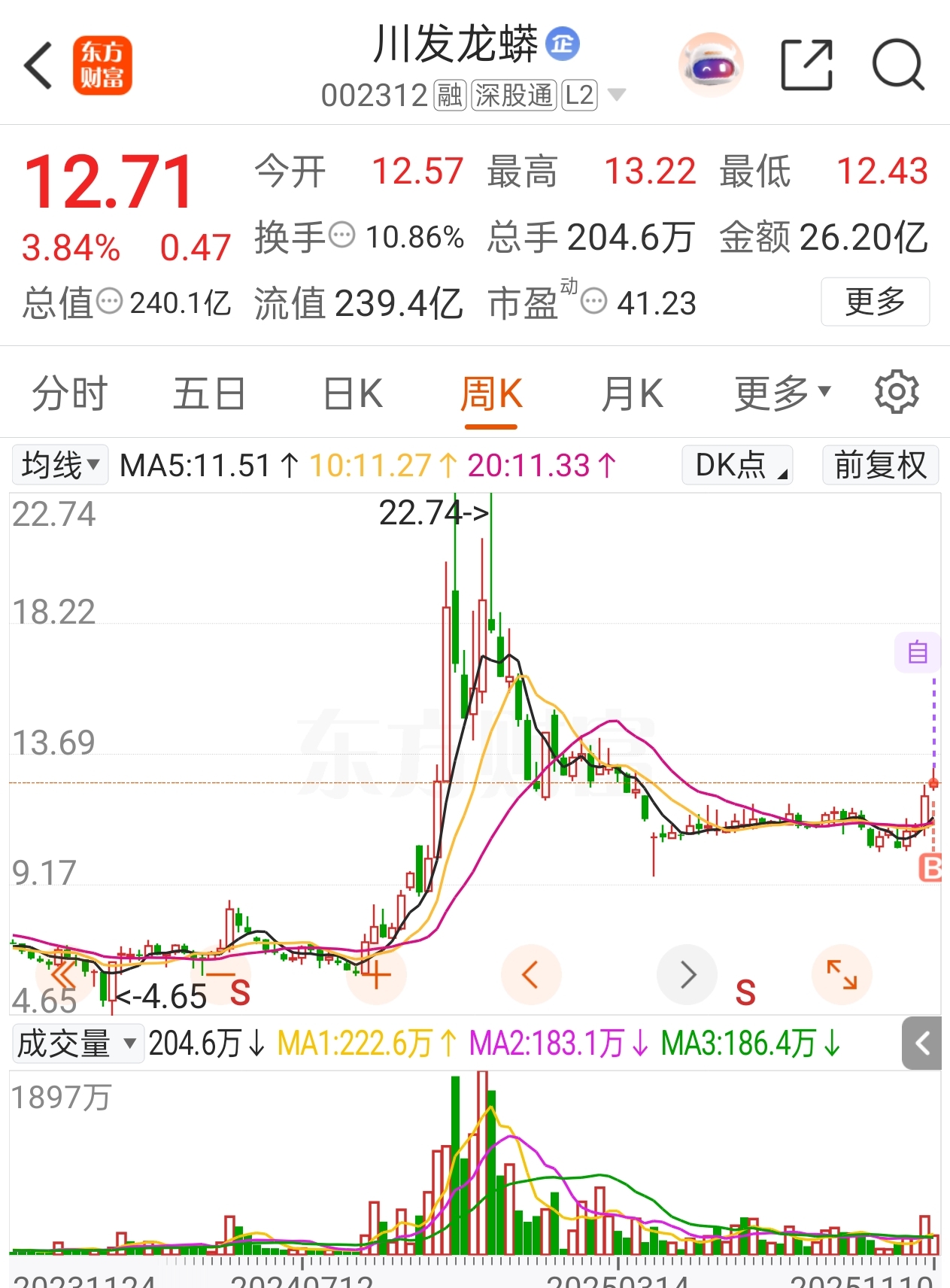 $川发龙蟒(SZ002312)$ 调整了一年了周线温和放量,赶上政策利好和原材料涨价,果断上车支持一下