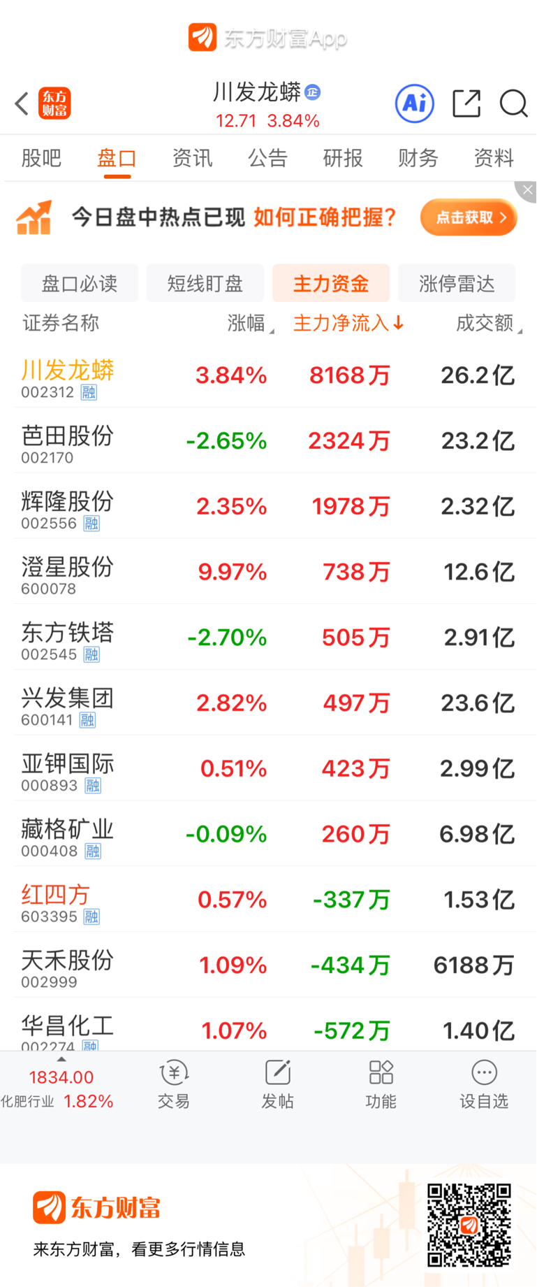 $川发龙蟒(SZ002312)$ 主力净流入8000多万,这里面有一半是散户卖的就4000多万又洗掉好多散户啊。