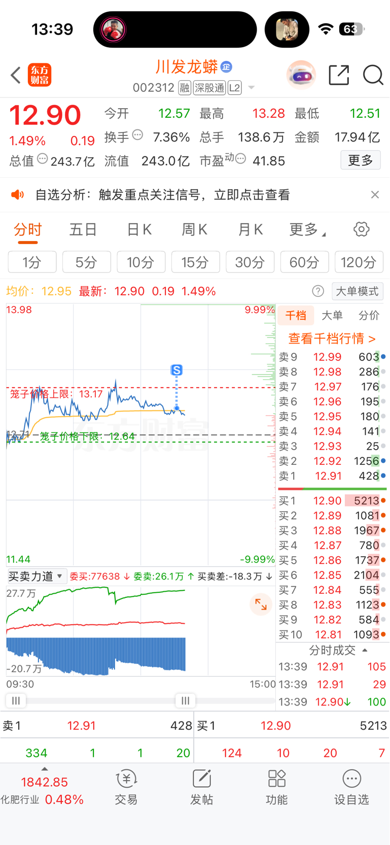 $川发龙蟒(SZ002312)$ 清仓闪人
