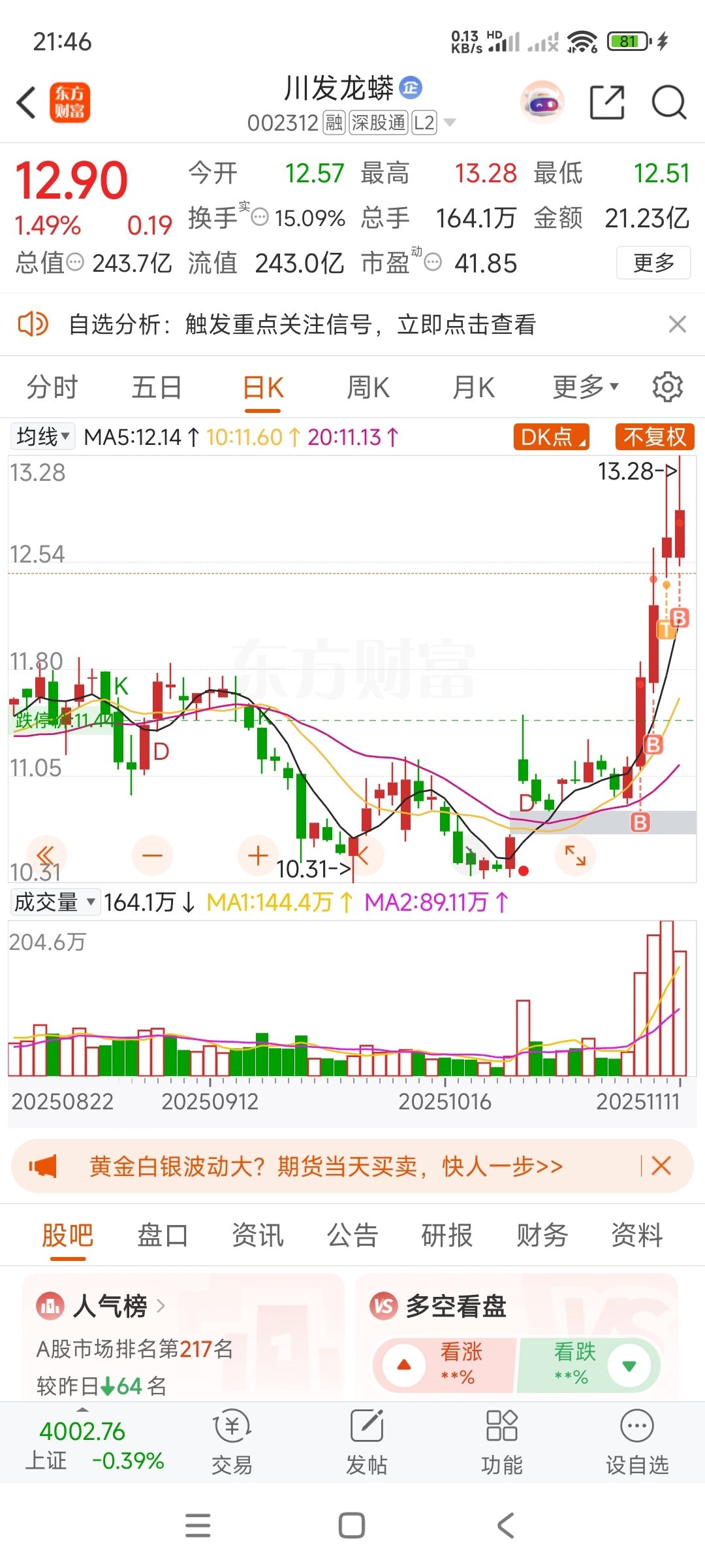 这股估计会起飞大家坐稳扶好
