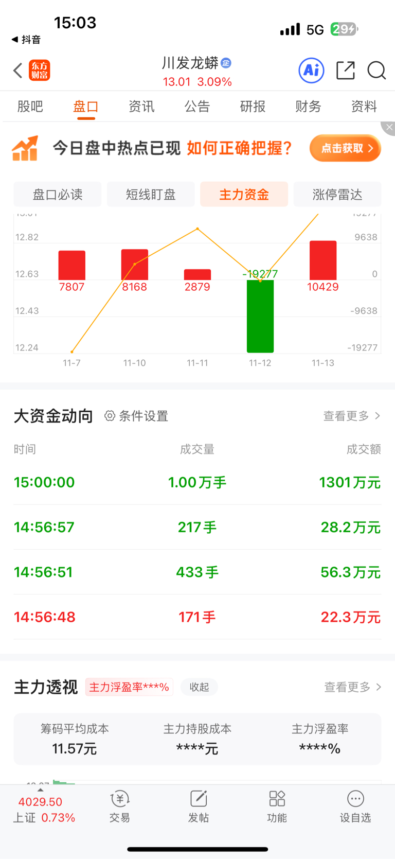 $川发龙蟒(SZ002312)$ 这是尾盘跑了一千多万吗??