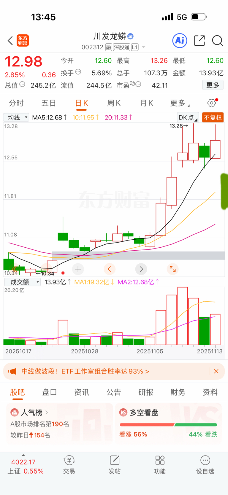 $川发龙蟒(SZ002312)$ 来吧宝贝打爆多苟,今天大阴线走起