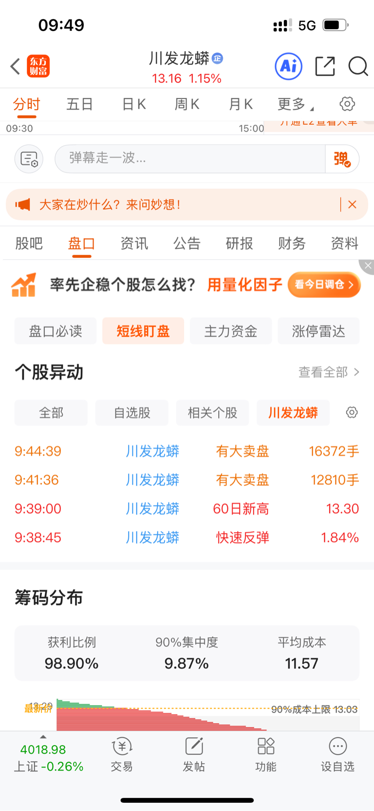 $川发龙蟒(SZ002312)$ 今天怎么这么多大卖盘,没有大买盘