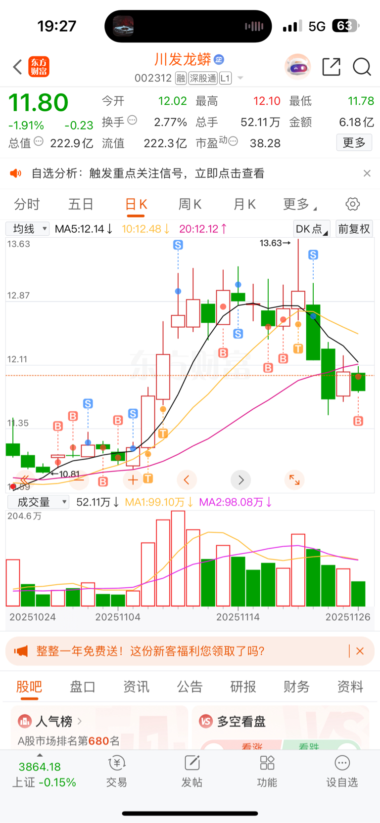 $川发龙蟒(SZ002312)$ 坐等拉伸