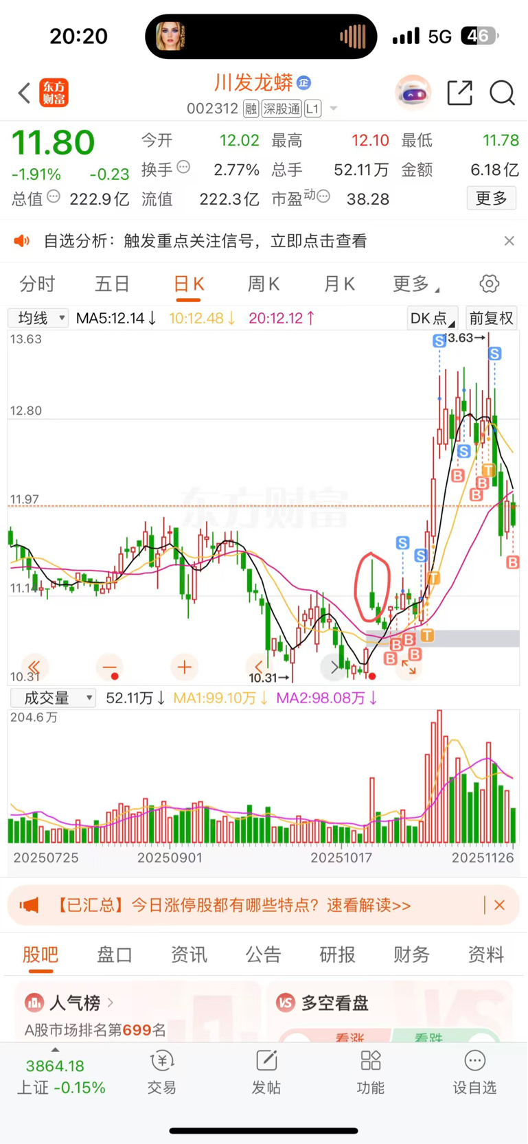 这是我给大家分析的,你是如何关注这只票,横盘1年了,从图中高开,一年横盘,随便加