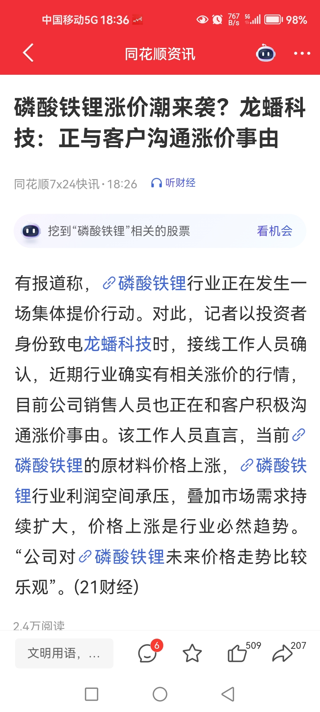 $川发龙蟒(SZ002312)$ 看好磷酸铁锂的未来!