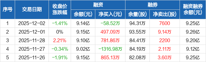 川发龙蟒:融资净偿还58.52万元,融资余额9.14亿元(12-02)