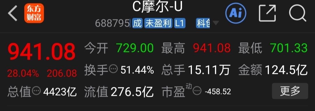 $川发龙蟒(SZ002312)$ 可流动的场内资金被$C摩尔-U(SH688795)$ 全抽干了,泡沫 4423 亿市值,钱从哪里来的,过两天还要来一个$沐曦股份(SH688802)$ 吸金,想想都知道会有多弱,鸡叉骨的冬天