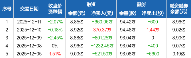川发龙蟒:融资净偿还660.96万元,融资余额8.85亿元(12-11)