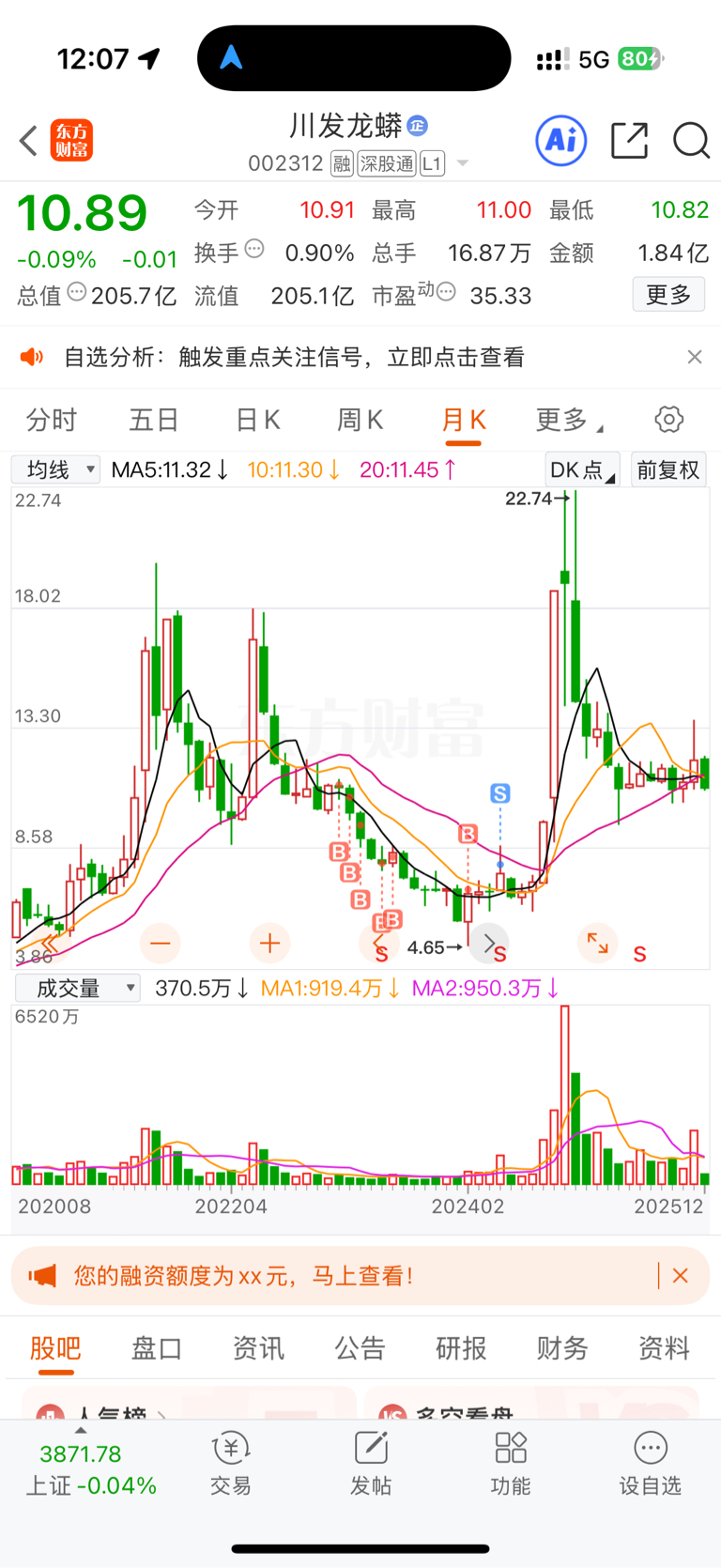 $川发龙蟒(SZ002312)$ 我永远的痛