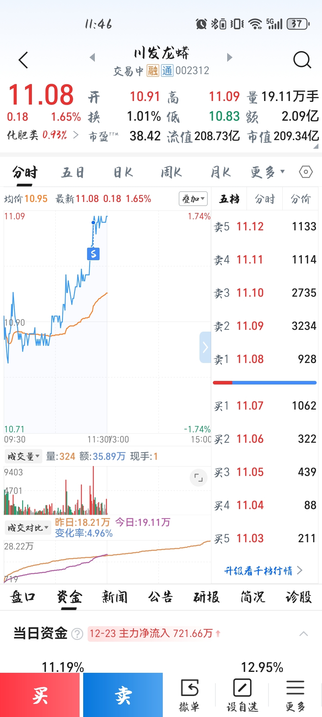 忍不住又卖了一成仓,10.98忍住了,11.08终究还是没忍住,这一卖成本干到11.6了