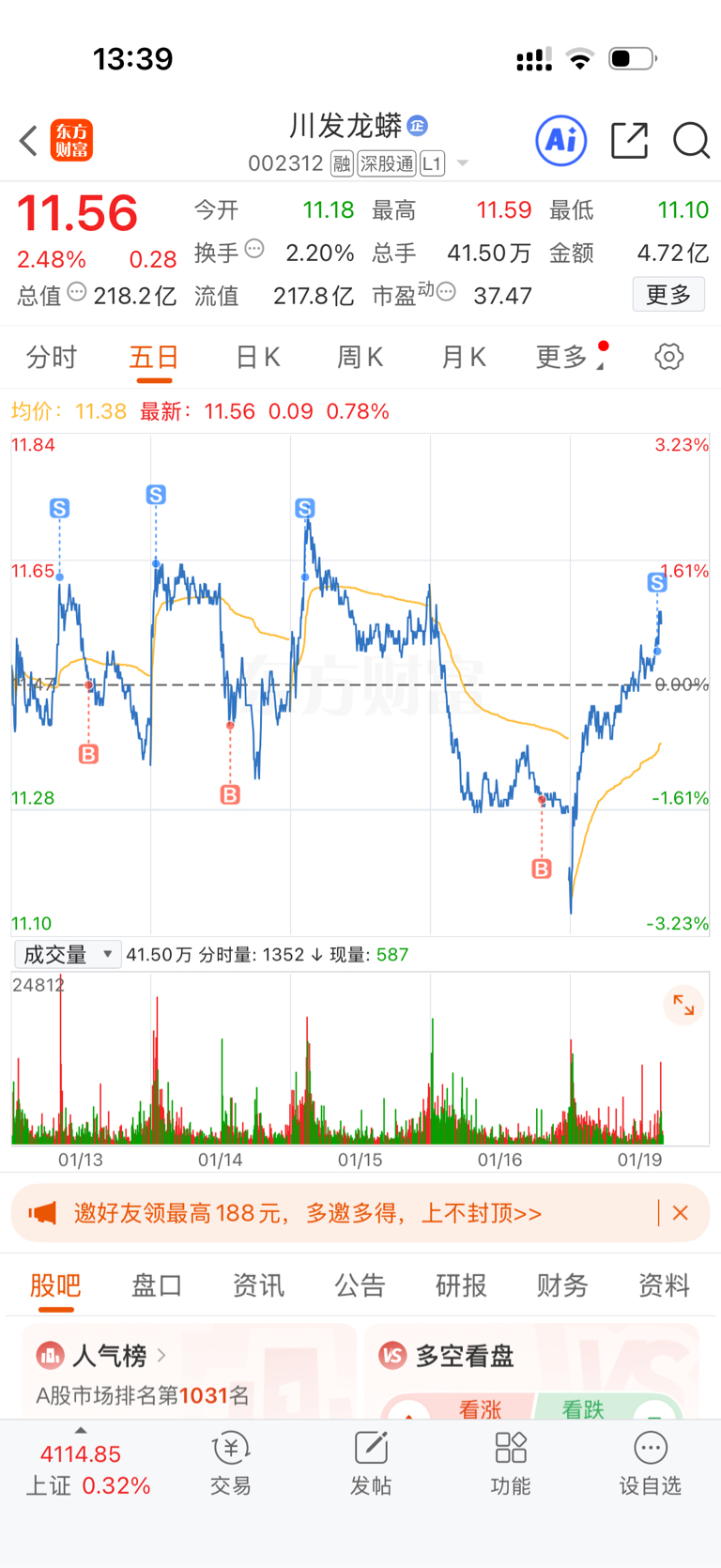 $川发龙蟒(SZ002312)$ 吃肉就跑就对了,不过应该还会继续上涨的