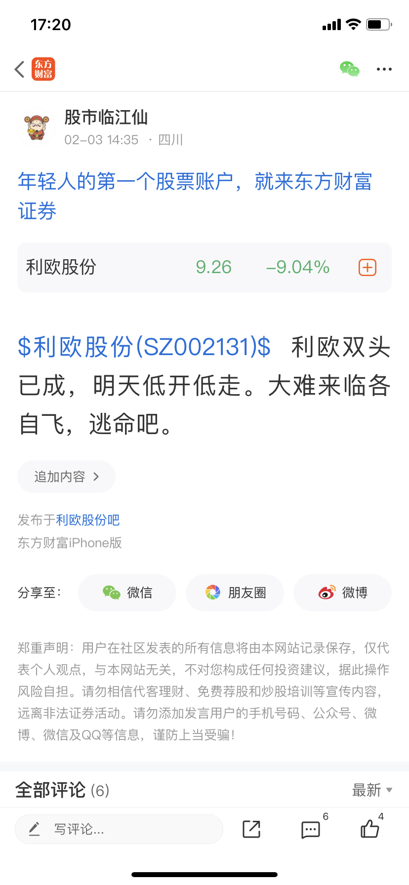 温馨提示: 1.根据《证券法》规定,禁止编造、传播虚假信息或者误导性信息,扰乱证券市场;2.用户在本社区发表的所有资料、言论等仅代表个人观点,与本网站立场无关,不对您构成任何投资建议。用户应基于自己的独立判断,自行决定证券投资并承担相应风险。《东方财富社区管理规定》