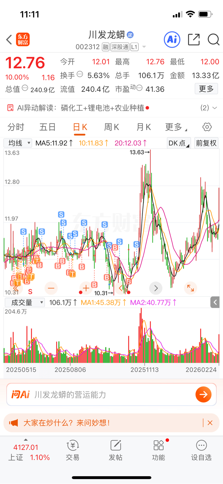 $川发龙蟒(SZ002312)$ 守了你一年!终于涨停个一次,原来躺平才是最舒服的!