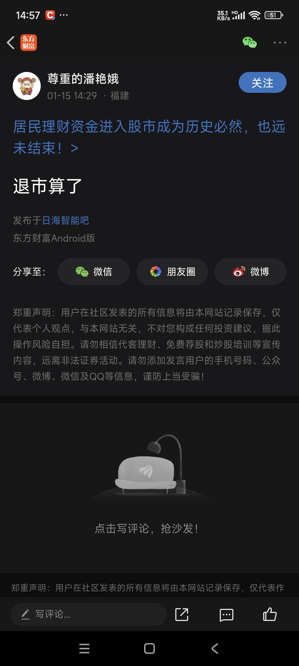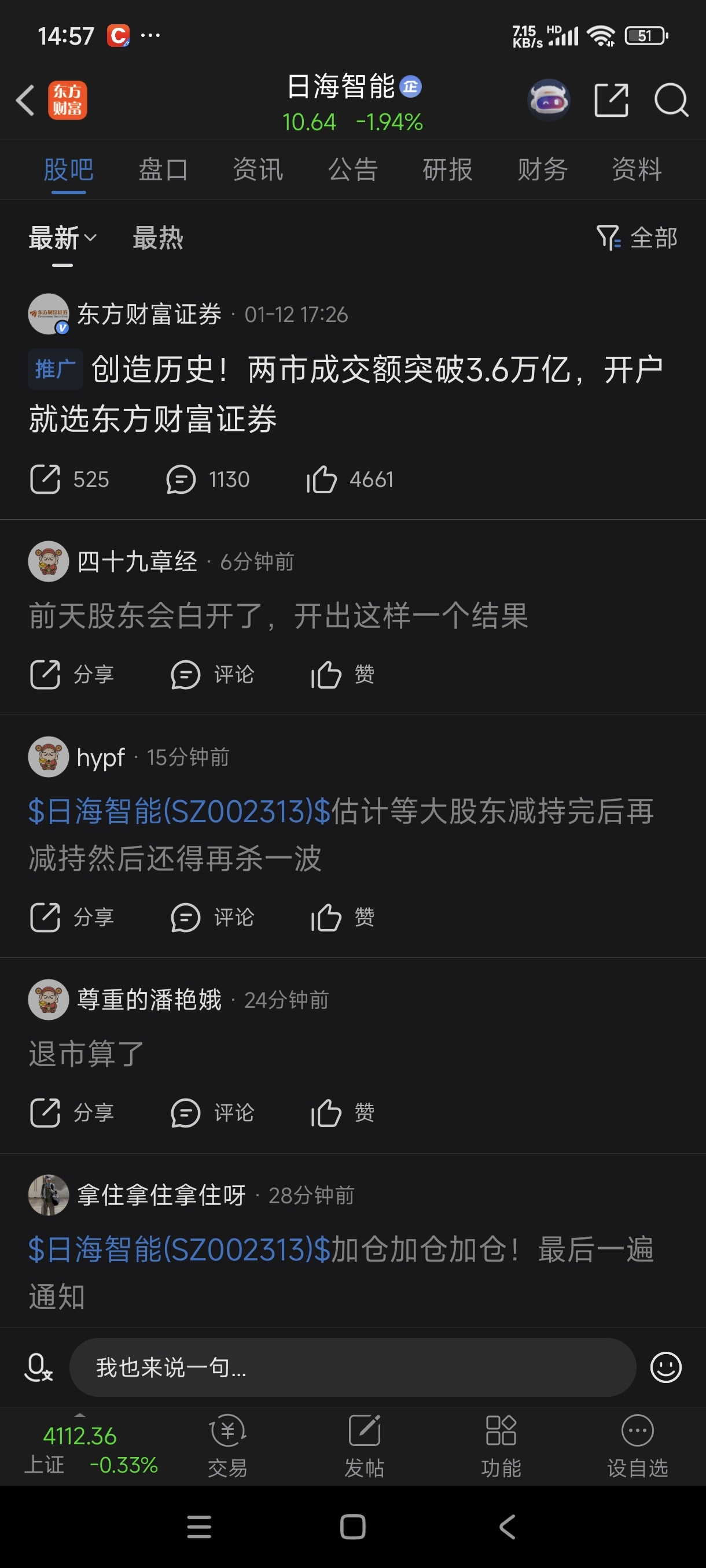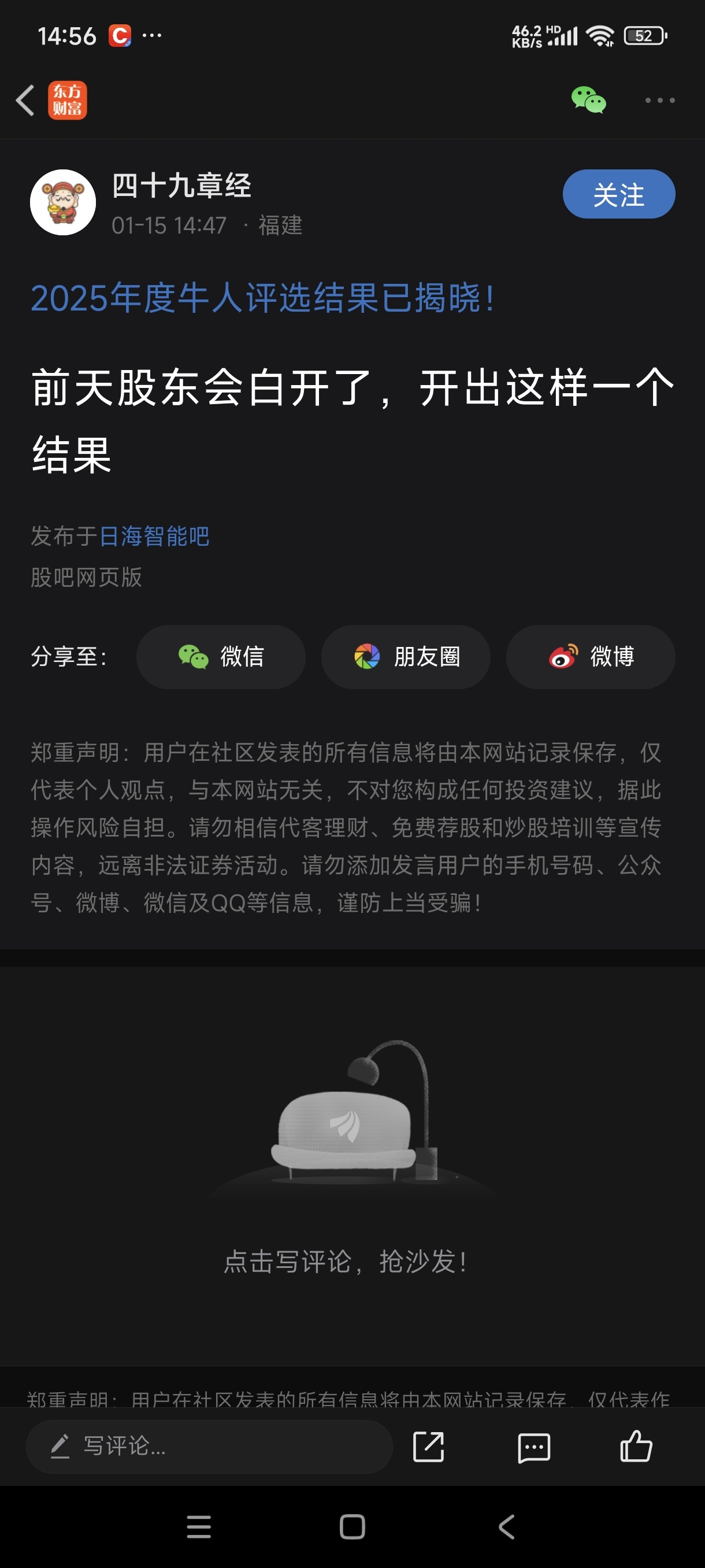 温馨提示: 1.根据《证券法》规定,禁止编造、传播虚假信息或者误导性信息,扰乱证券市场;2.用户在本社区发表的所有资料、言论等仅代表个人观点,与本网站立场无关,不对您构成任何投资建议。用户应基于自己的独立判断,自行决定证券投资并承担相应风险。《东方财富社区管理规定》