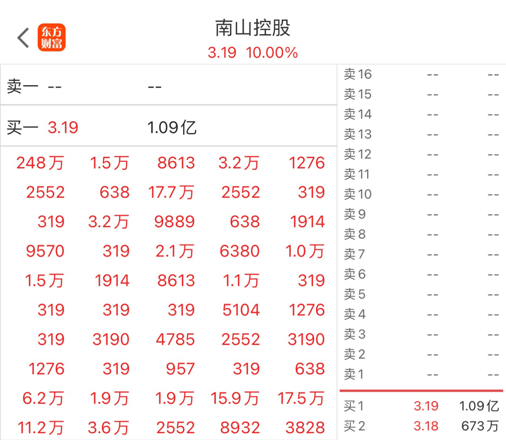 $南山控股(SZ002314)$ 感觉都是散户的小单排在前