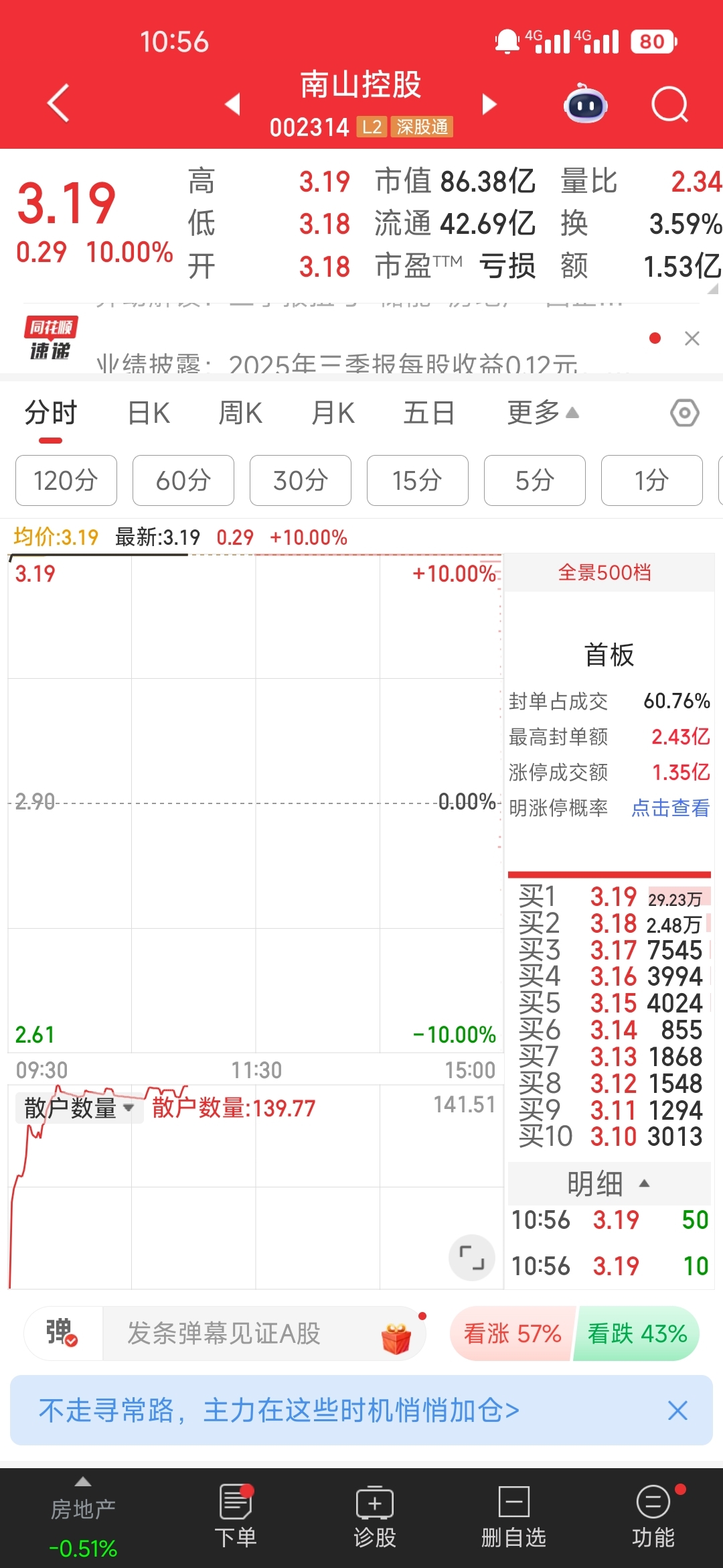 $南山控股(SZ002314)$ 赶紧跑吧,全是散户往里面冲,散户人数大幅增加