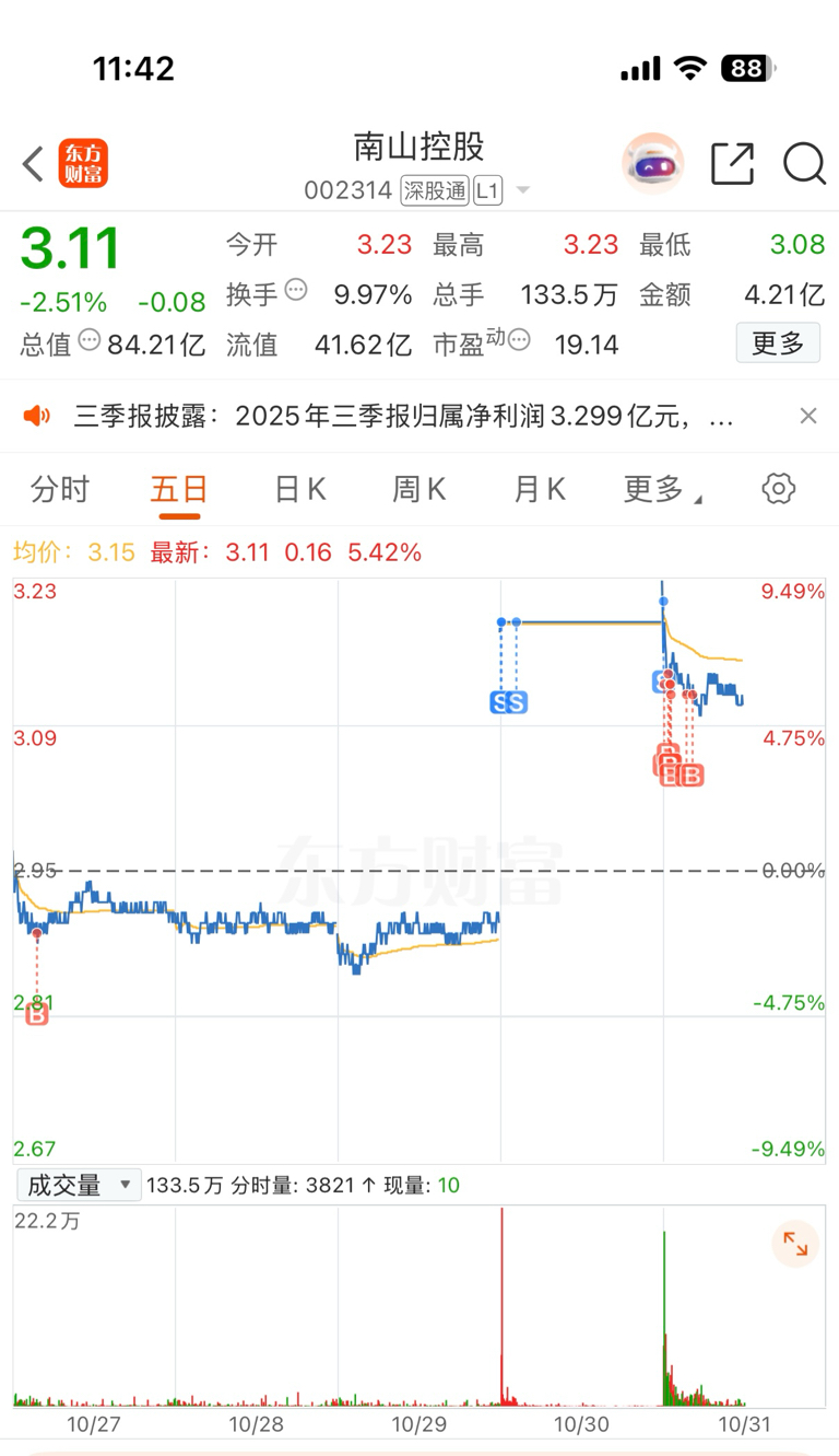 $南山控股(SZ002314)$ 老庄只能信一百次里的一两次~