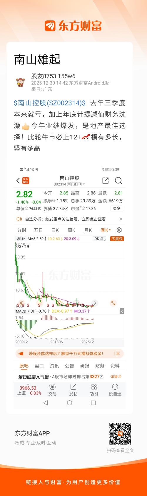 $南山控股(SZ002314)$ 去年三季度本来就亏,加上年底计提减值财务洗澡