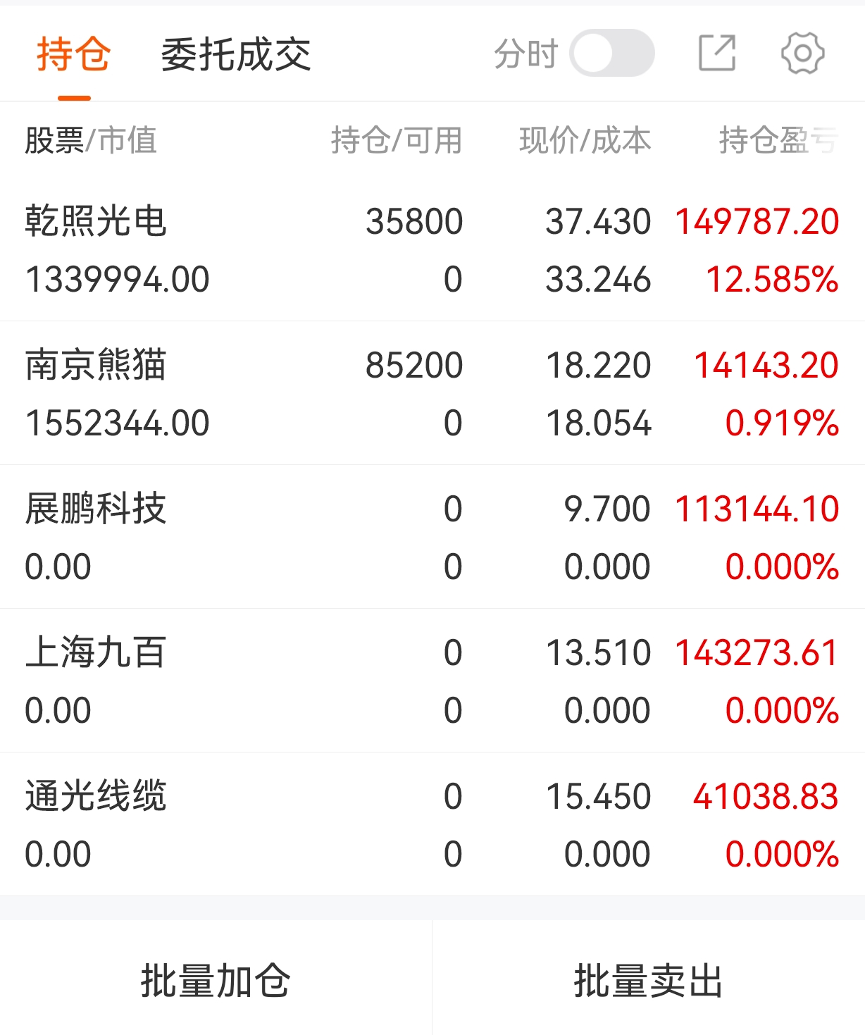 昨日之深渊,今日之浅谈。路虽远,行则将至。事虽难,做则可成。$乾照光电(SZ300102)$ $南京熊猫(SH600775)$ #炒股日记#