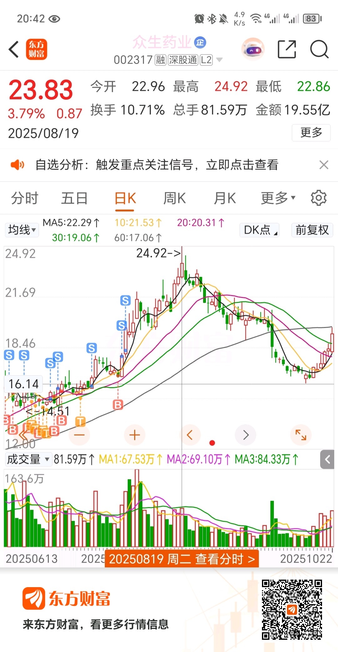 $众生药业(SZ002317)$ 鹦哥6月份曾经果断说过众生今年到25左右,果不其然8月19日众生来到今年年内最高价24.92。鹦哥的眼光已经无需多言。彼时鹦哥13至15元区间重仓介入,可惜中途减仓部分去北交。现在鹦哥即将重回众生,你们懂得这意味着什么