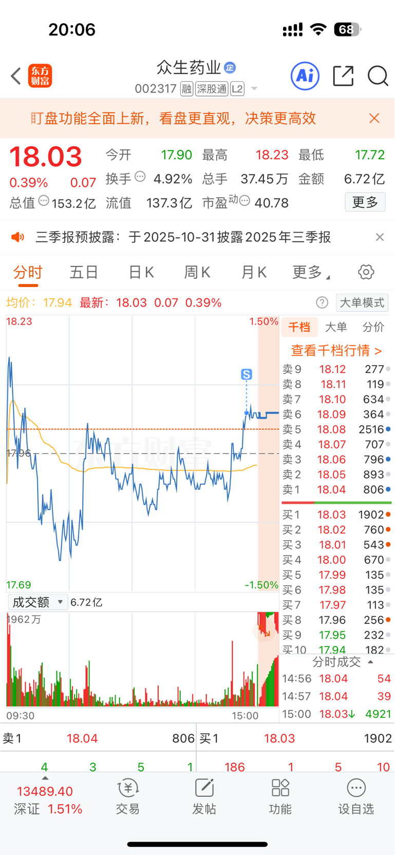 $众生药业(SZ002317)$ 明天能不能让我接回来