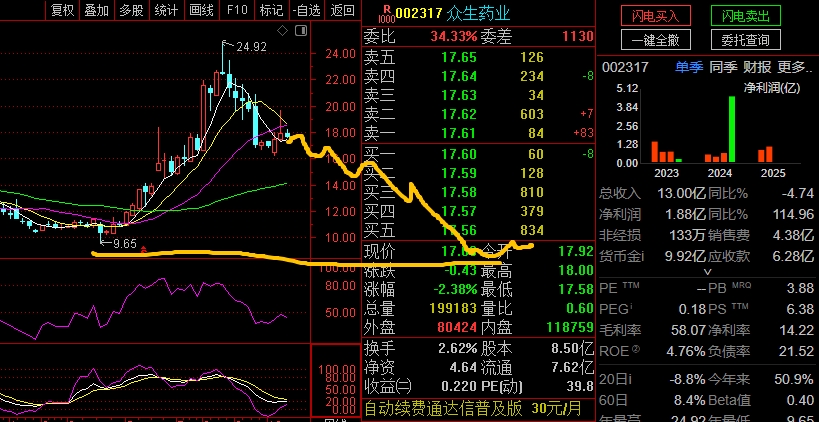 $众生药业(SZ002317)$ 回到9元标准市值,等腰三角形砸盘,,………………………