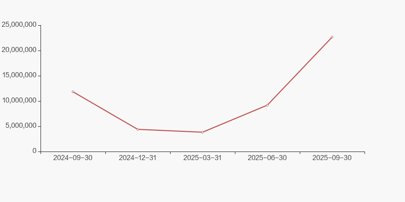 截至2025年9月30日,公司最新总股本为8.5亿股,其中流通股本为7.62亿股。户均持有流通股数量由上期的8471股上升至1.04万股,户均流通市值18.05万元。