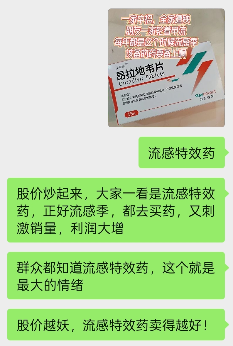股价炒起来,大家一看是流感特效药,正好流感季,都去买药,又刺激销量,利润大增