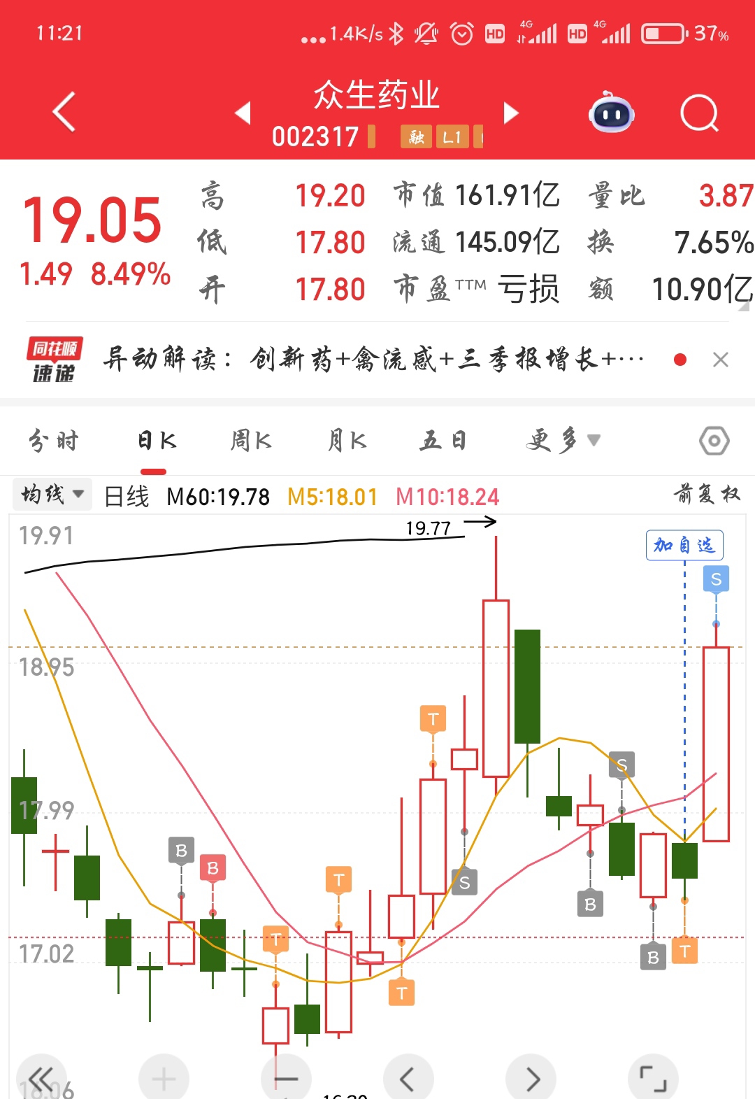 $众生药业(SZ002317)$ 这疯子,又卖飞了。赶紧跌吧,我要买回来。