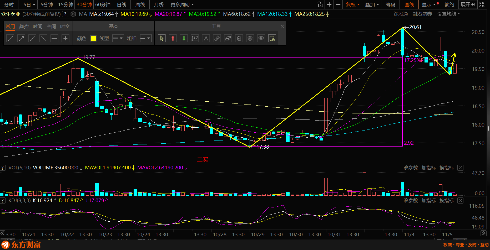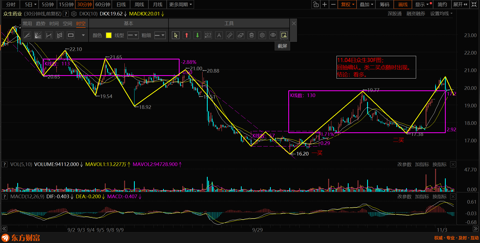 日线图突破中枢上轨,回抽确认。随时出现类二买点概率极大。30F图也是如此。最差结果,暂时回到中枢内震荡蓄势,向上趋势不变。
