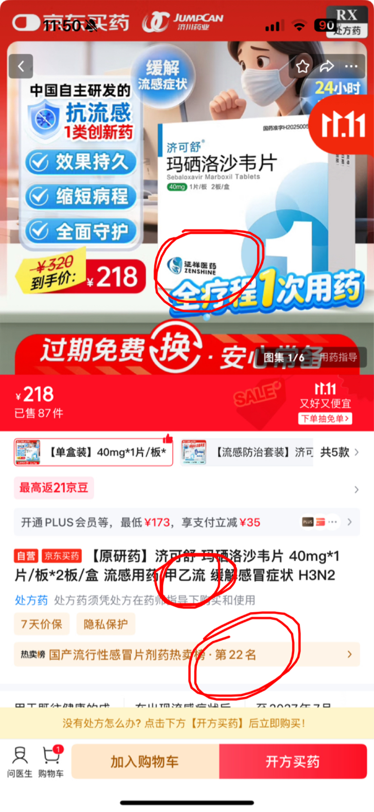 $众生药业(SZ002317)$ 罗氏的第二代“流感神药”——玛巴洛沙韦的3种上市公司的国产替代,在京东上排名及价格: