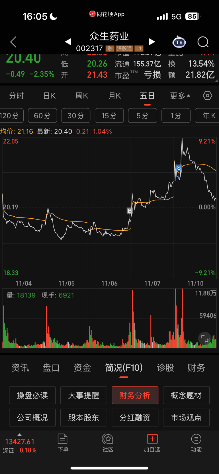 $众生药业(SZ002317)$ 拍了两个小时大腿发现白拍了
