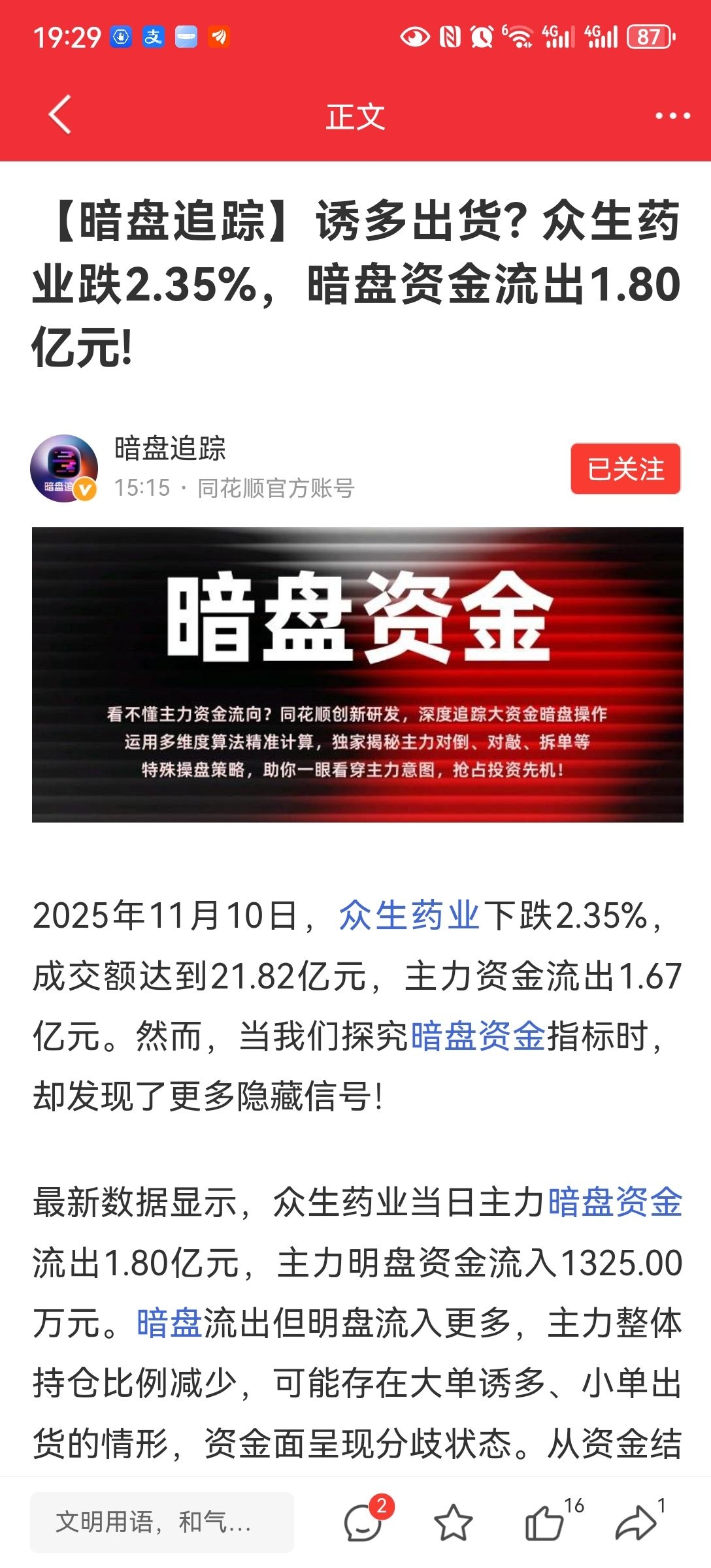 $众生药业(SZ002317)$ 明天凉凉啦…
