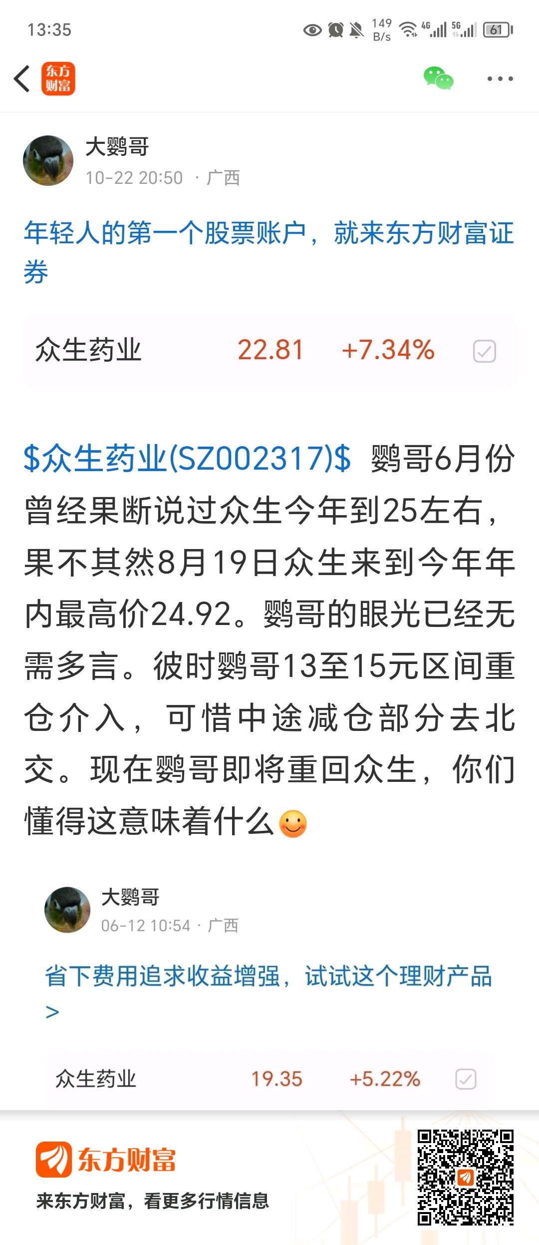 $众生药业(SZ002317)$ 鹦哥已经在16左右为迷茫的众人指明了众生未来的道路,作为鹦哥最看好的主板股,涨到天上也是无比正常,鹦哥的毒辣眼光早已无需多言