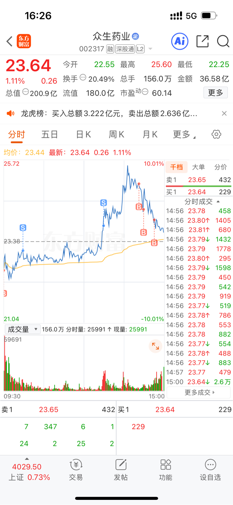 $众生药业(SZ002317)$ 从浮盈到浮亏只用了20分钟,按照盘面结构来讲,明天反包概率99,没想到14.10到14.56分都是出货,也是符合昨天打板的游资止盈,明天竞价若不是高开5%则三十六计最后一计,拭目以待