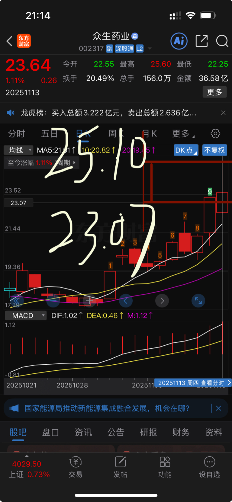 $众生药业(SZ002317)$ 画好了兄弟们,明天就按照这个给咱走趋势,毕竟花钱学的K线图必须拿出来给大哥炫一下,画的好了给个赞赞看看多少东财的军团
