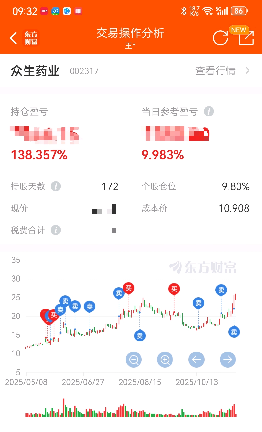$众生药业(SZ002317)$ 感谢众生不枉我那你172天
