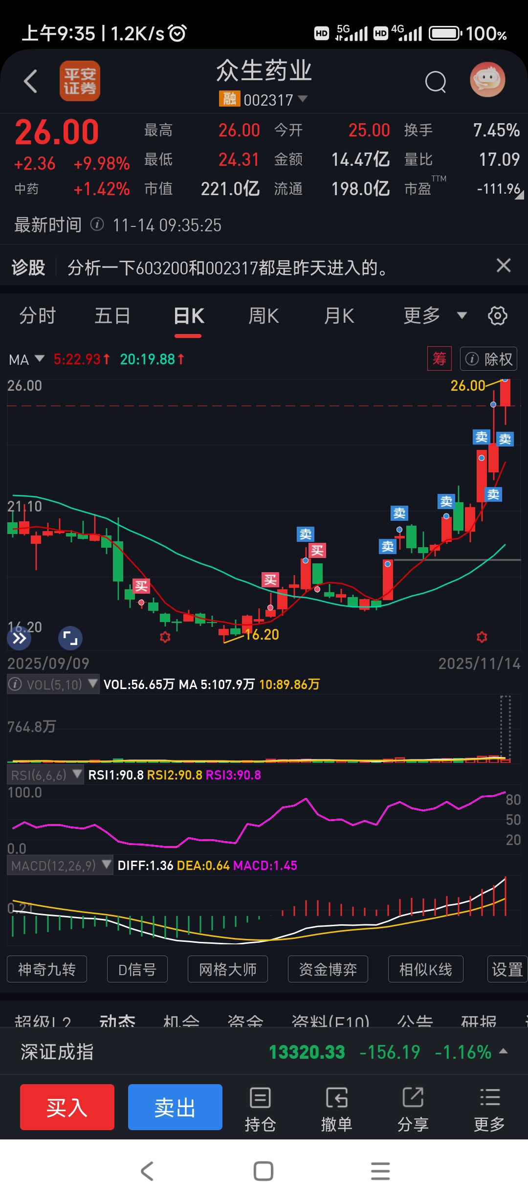 $众生药业(SZ002317)$ 只要底仓足够厚,卖飞,是不可能卖飞的。赚多赚少的问题