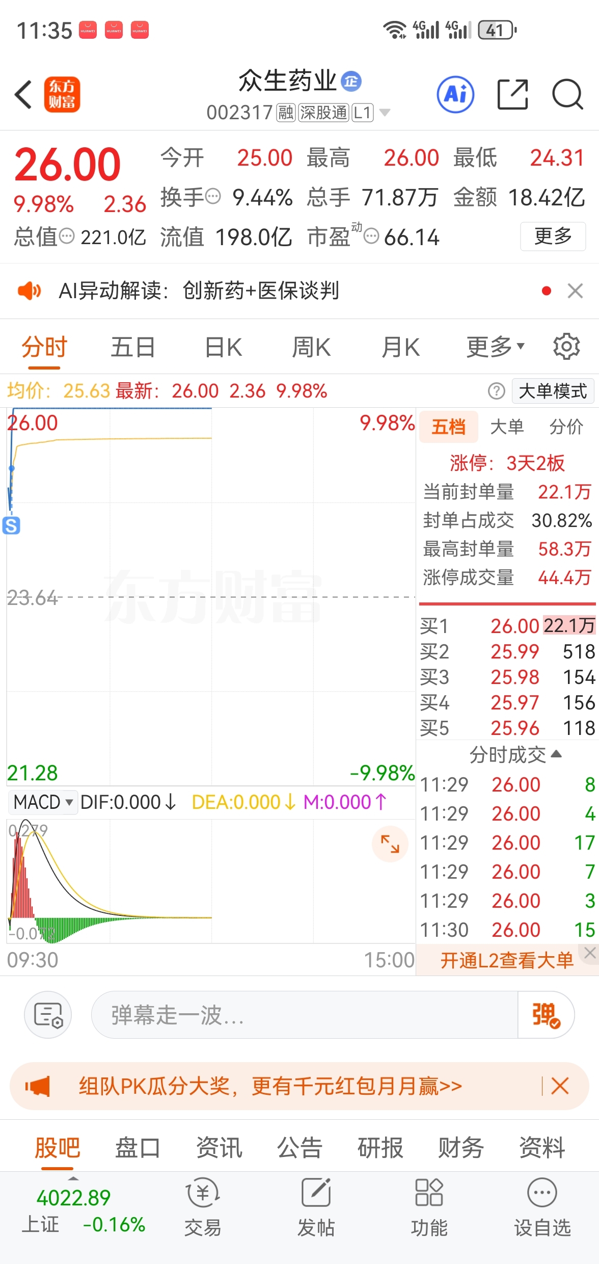 $众生药业(SZ002317)$ 今天最大的失败就是卖飞了他,卖之前没来的及卜一下