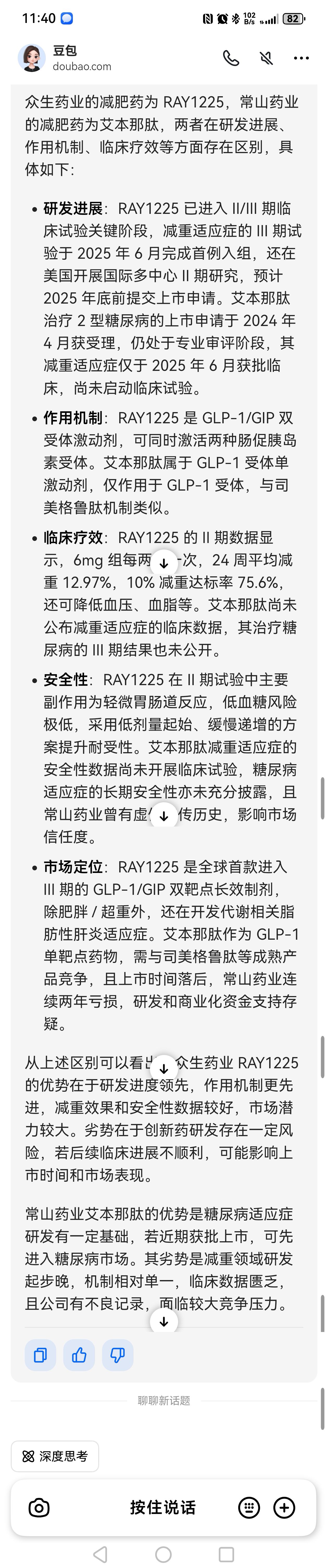 $众生药业(SZ002317)$ 众生和常山在研减肥药对比